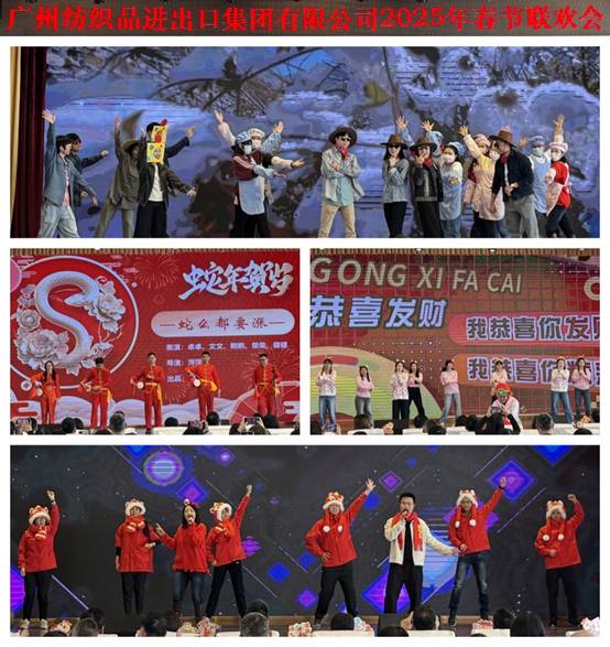 會議在歡樂的氛圍中進行最后一項議程——紡出公司春節文藝表演。節目以紡出公司領導班子帶領的《“我”的成長史》拉開序幕;《蛇么都要漲》以“三句半”的形式引起一片歡聲笑語;創意舞蹈秀《多財多億賀新春》把現場氣氛推向高潮;《漫步蛇年富貴平安》用歌聲表達了對新年的期許與美好祝福。